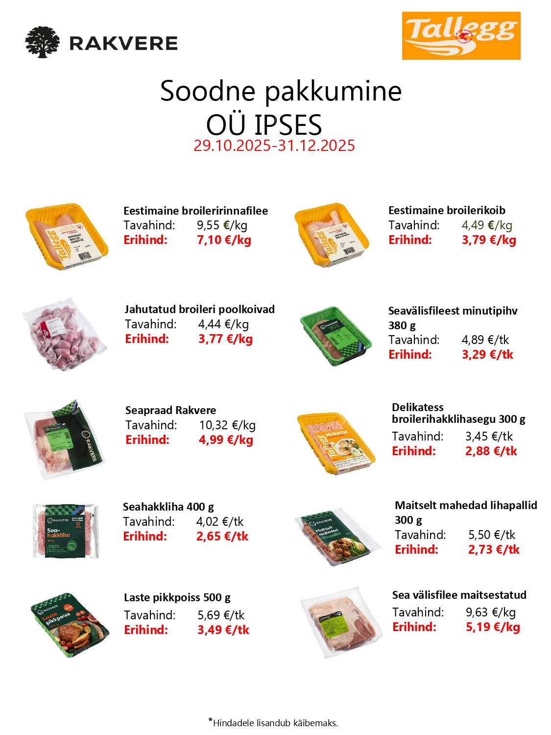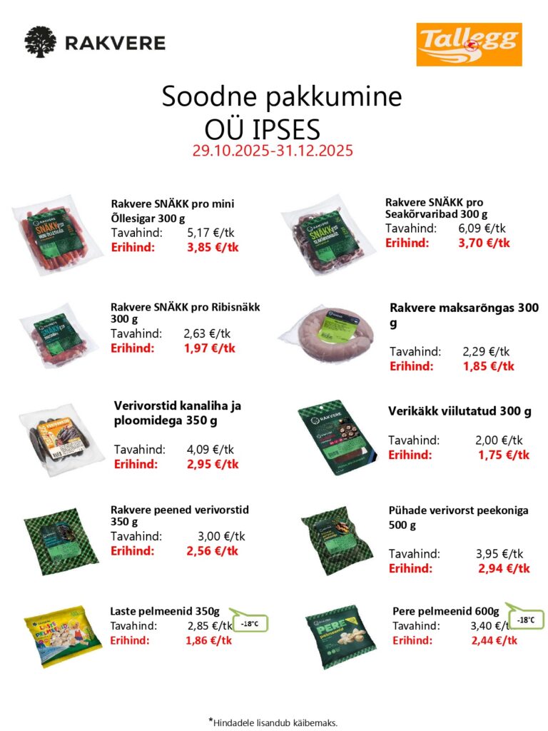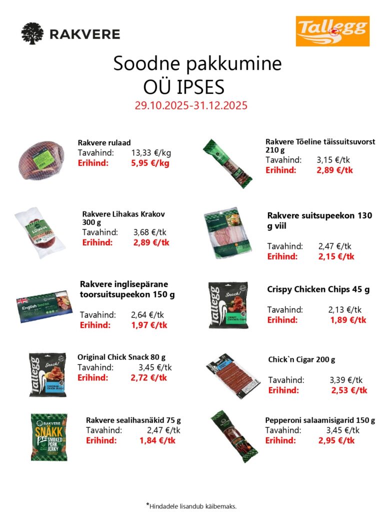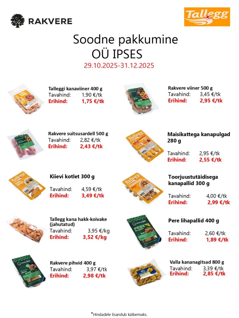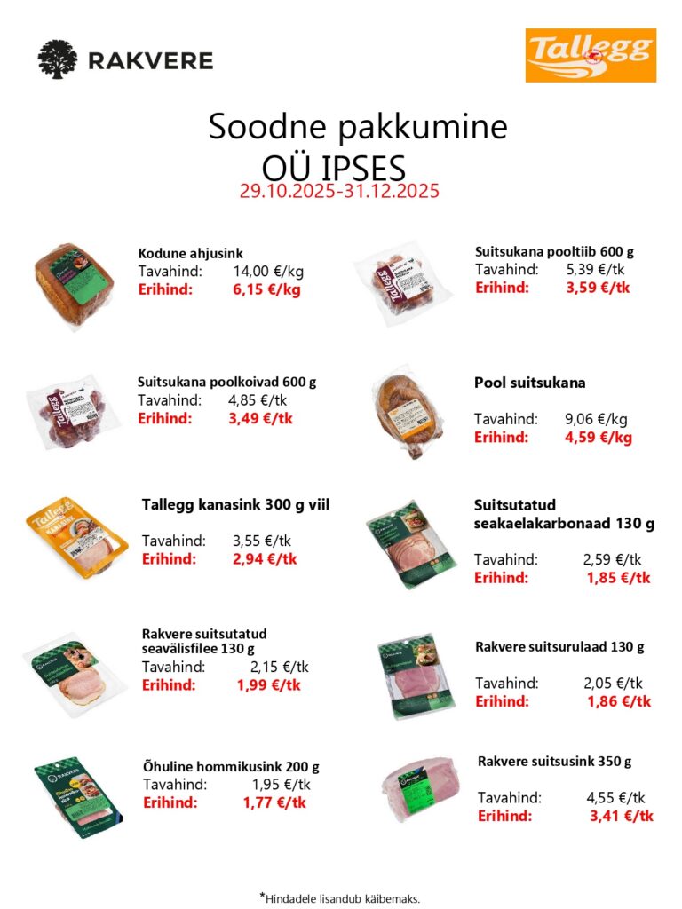 Siin on kirjas meie selle kuu soodsad pakkumised. Need vahetuvad igal kuul. Huvi ja küsimuste korral võta meiega ühendust!