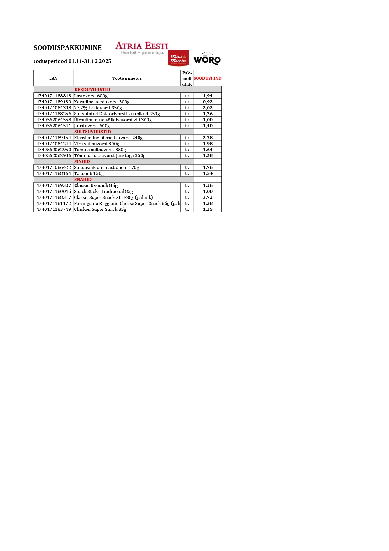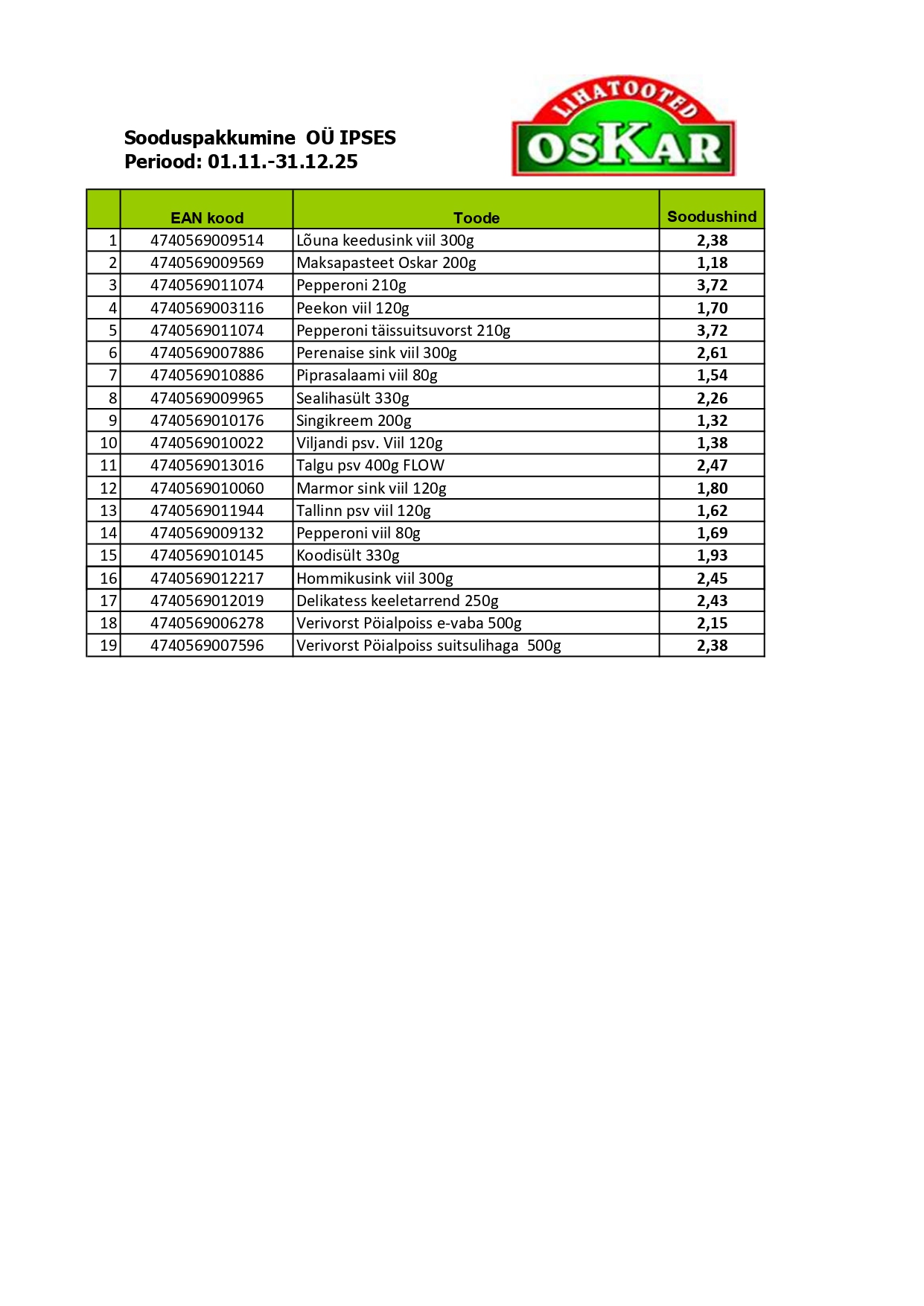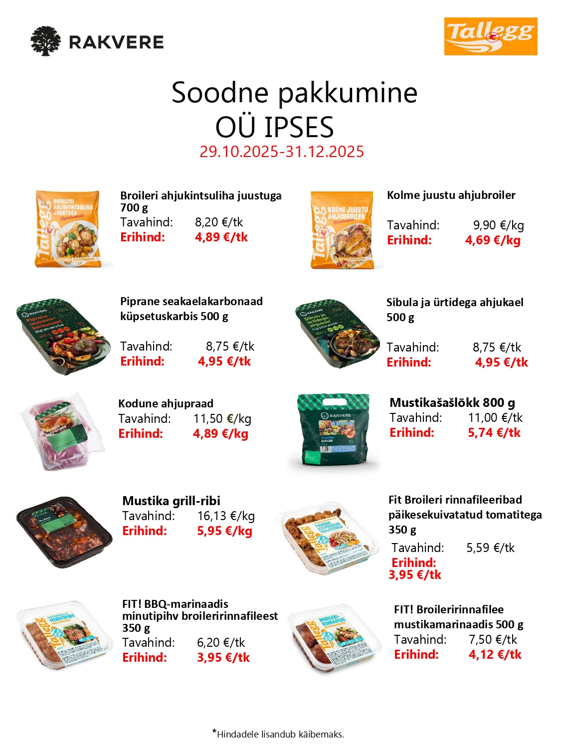 Siin on kirjas meie selle kuu soodsad pakkumised. Need vahetuvad igal kuul. Huvi ja küsimuste korral võta meiega ühendust!
